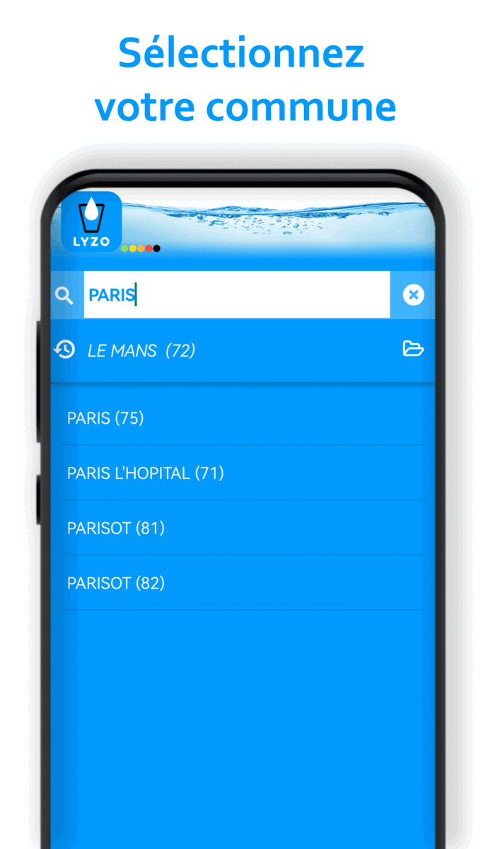 LYZO© répertorie les données des contrôles sanitaires de l’eau distribuée dans l’ensemble des communes de France.
